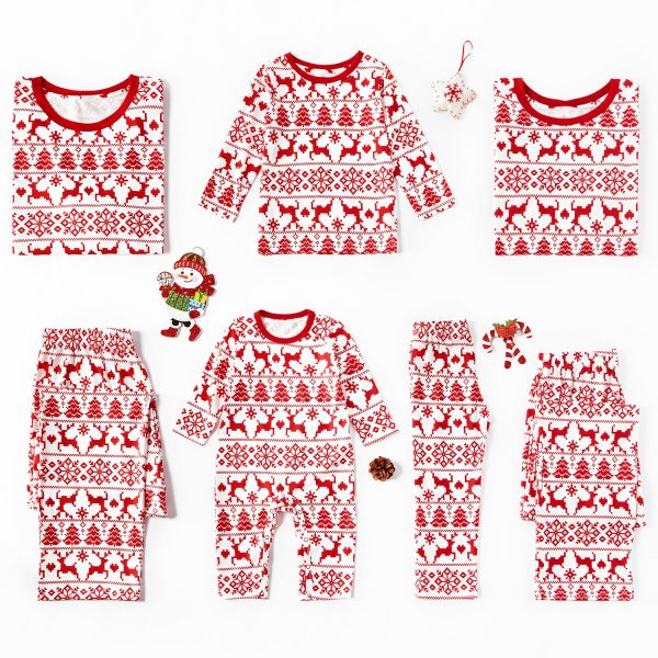 Christmas Tree Deer and Snowflake Patterned Family Matching Pajamas Set