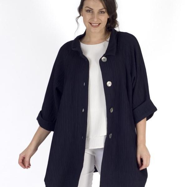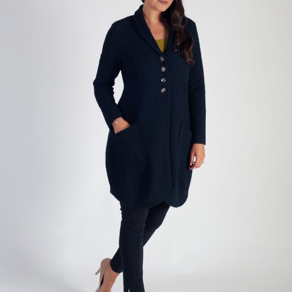 Navy Leatherette Trim Cable Emroidered Quilt Coat