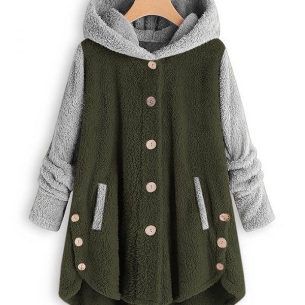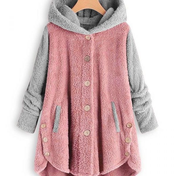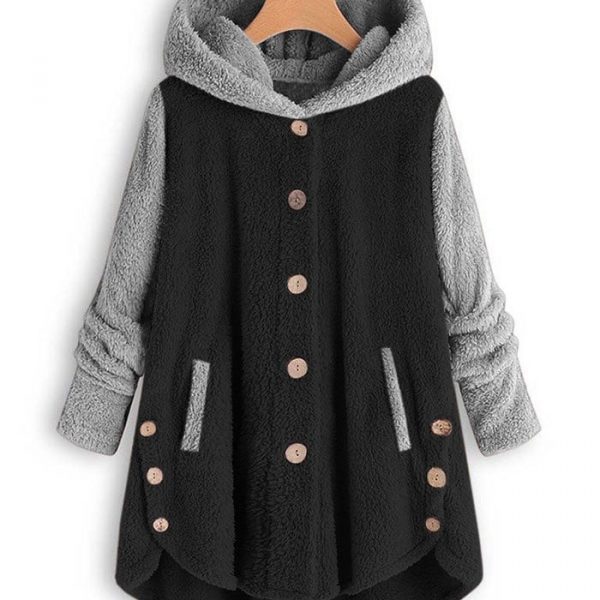 Plus Size Dog Ear Colorblock High Low Plush Coat