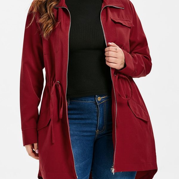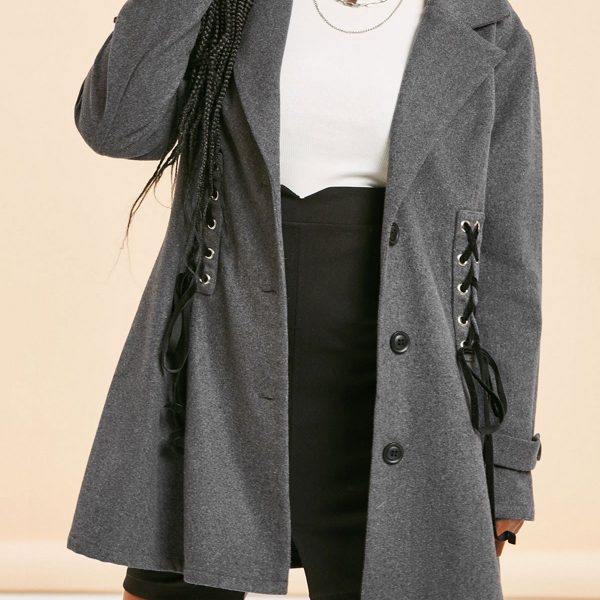 Plus Size Dual Lace-up Single Breasted Tunic Coat