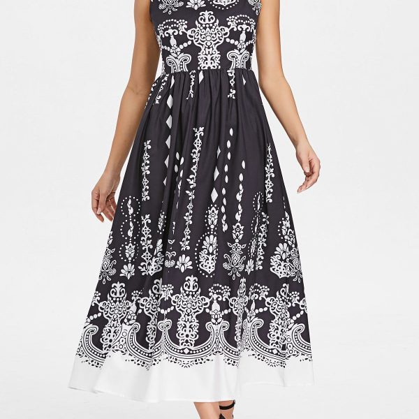Baroque Pattern Sleeveless Maxi Dress