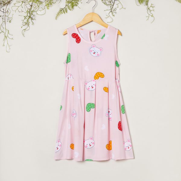 Beautiful Cute Bear Love Allover Print Sleeveless Dress