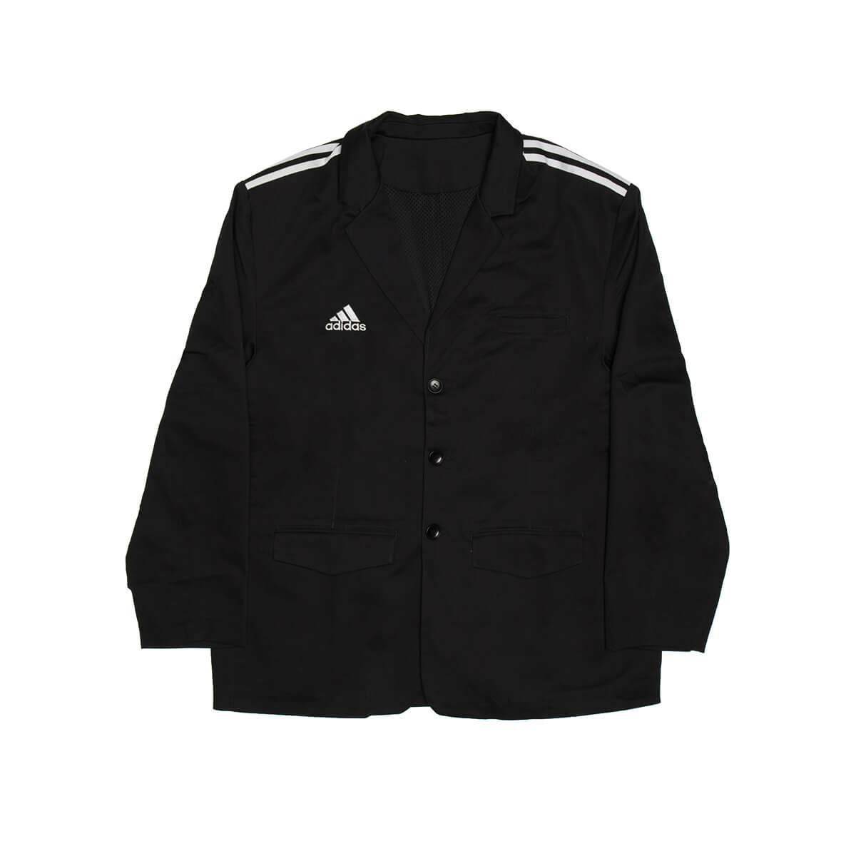 Adidas Coach blazer from the F/W2018-19 Gosha Rubchinskiy collection in blackThis blazer from Gosha Rubchinskiy new collection in collaboration with adidas Football comes in a comfortable fit. The coach blazer, here in black, is made of cotton and features three pockets at front, three inner pockets and embroidered adidas logos.- Coach blazer – Pockets- Adidas logo- Composition: 98% Cotton 2% Elastane – lining 100% Recycled polyester – Made in China- Code: G013C101-1- The model is wearing an international L size
