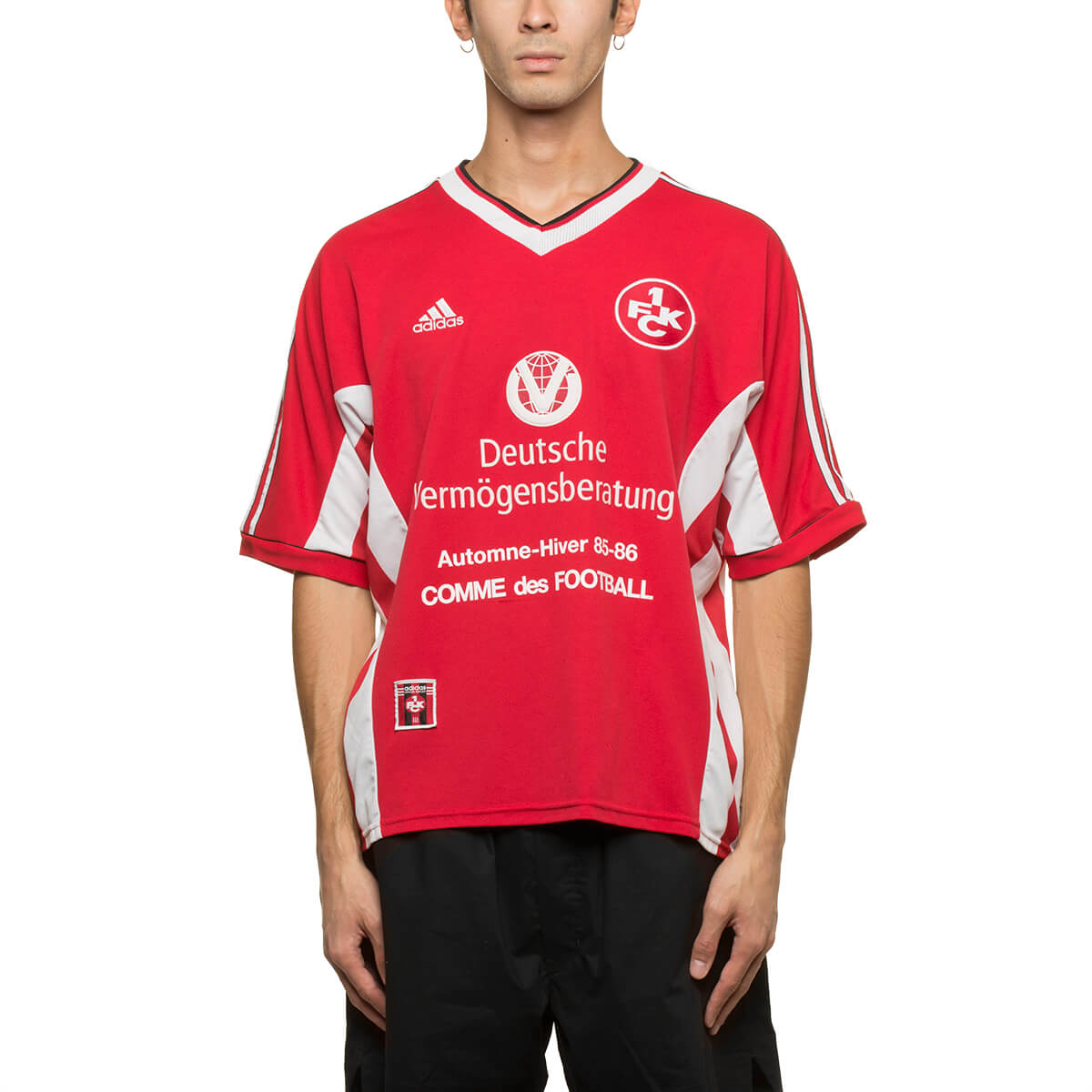 Comme des Football t-shirt from Les Vêtements de Football collection in redThis vintage t-shirt from Les Vêtements de Football collection is part of The Tribute Issue by NSS sports. The Kaiserslautern football team tee by adidas, here in red, comes in a regular fit and features embroidered Kaiserslautern crest, Nike logo and a print at front and back. This from Les Vêtements de Football is a vintage t-shirt: every imperfection is considered part of the garment and makes it a unique piece. – Vintage adidas jersey- Kaiserslautern team- Composition: 100% Polyester- Code: comme des football – XL size