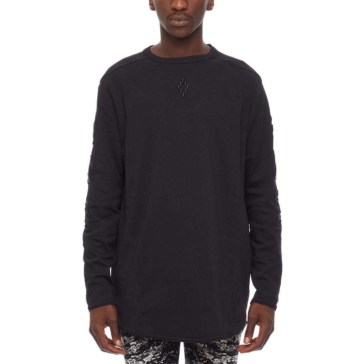 Cerro Bayo LS tee from the F/W2016-17 Marcelo Burlon County of Milan collection in blackThis long sleeve tee from County of Milan new collection comes in a comfortable fit. The crew neck LS t-shirt, made of soft cotton, features black patches at back and County of Milan logo at front. The Cerro Bayo LS tee from Marcelo Burlon County of Milan is made in EU.- Long sleeve t-shirt with patches- Crew neck- County of Milan logo- Composition: 100% Cotton- Made in EU- Code: CMAB011F160110541010- The model is wearing an international M size