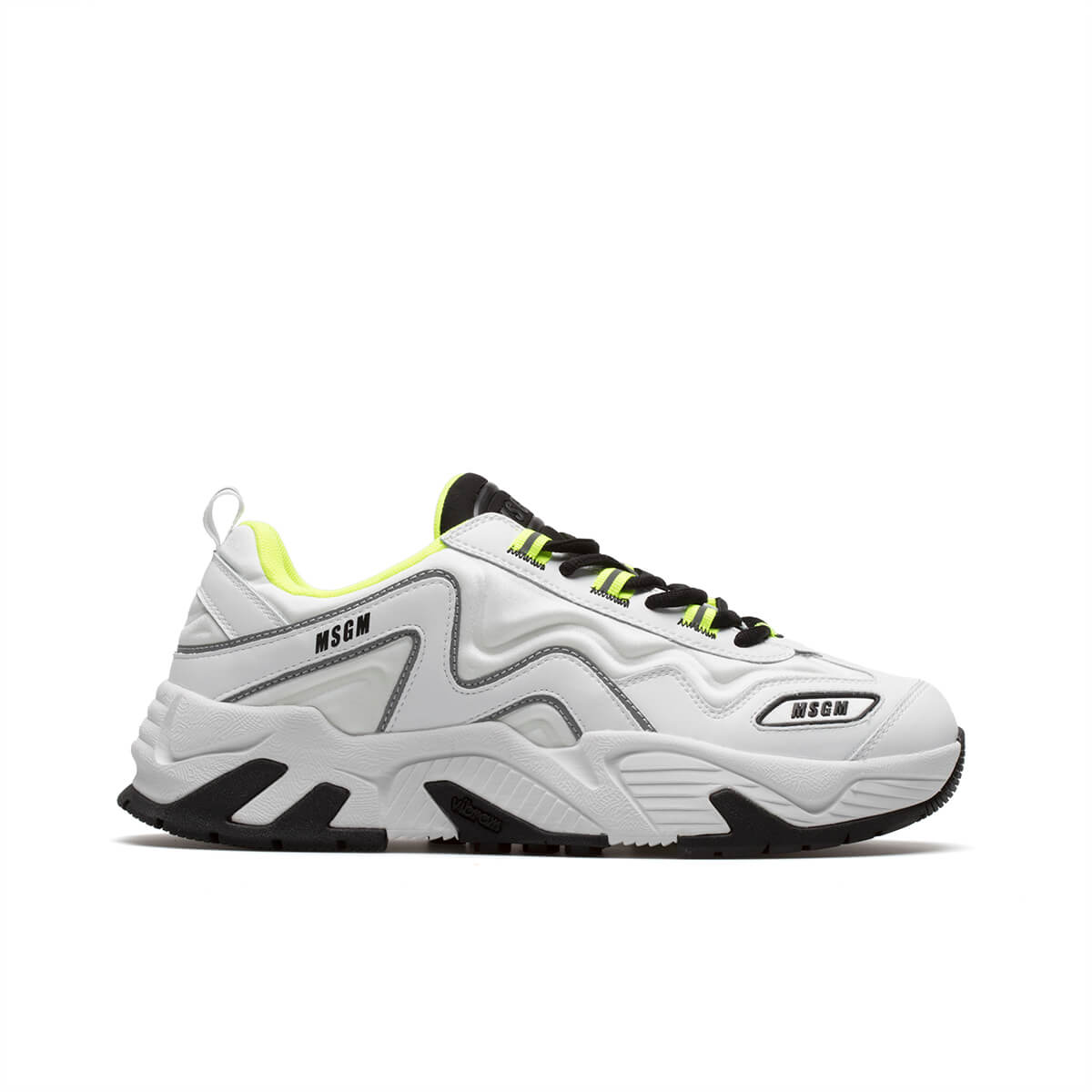 MSGM white sneakers Vortex from the S/S2020 collection These sneakers are from MSGM new collection. The Vortex sneakers, here in white, feature a leather, textile and synthetic leather upper, reflective details, Vibram rubber sole and MSGM logo.- Vortex sneakers – Leather, textile and synthetic upper- Reflective details – Vibram rubber sole – MSGM logo- Composition: 70% Leather 20% Fabric 10% Synthetic leather – sole 100% Rubber – Made in Italy- Code: 2840MS7001 140 01- Footwear size: IT