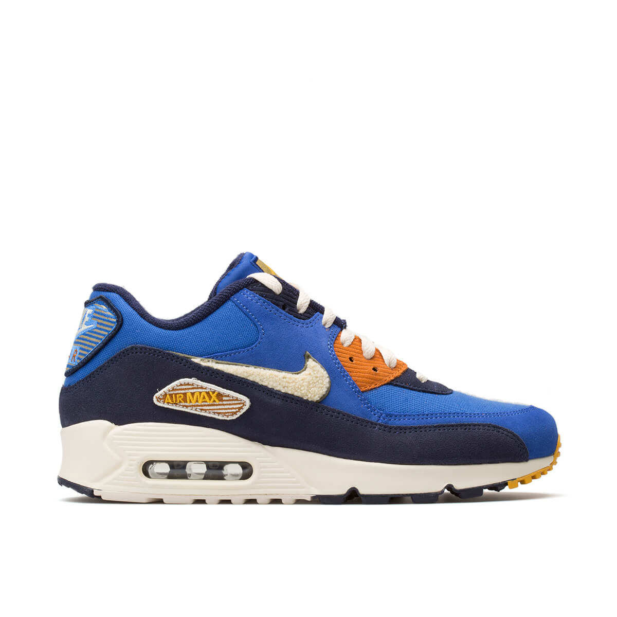 Nike Air Max 90 Premium SE from the Fall ’18 collection in blueAlmost 10 years after the Air-Sole unit arrival, in 1987 the first Air Max 1 debuted with the distinctive visible air in its heel. Since then, the Air Max have become one of the most iconic sneakers of Nike. This Nike Air Max 90 Premium SE sneaker features a canvas and suede upper, Max Air unit under the heels for better cushioning, flex grooves for a natural motion and a rubber outsole with Waffle pattern for a superior traction.- Canvas and suede upper- Max Air unit- Flex grooves for a natural motion- Rubber outsole with Waffle pattern- Sizing: Footwear (USA)- Nike code: 858954-400