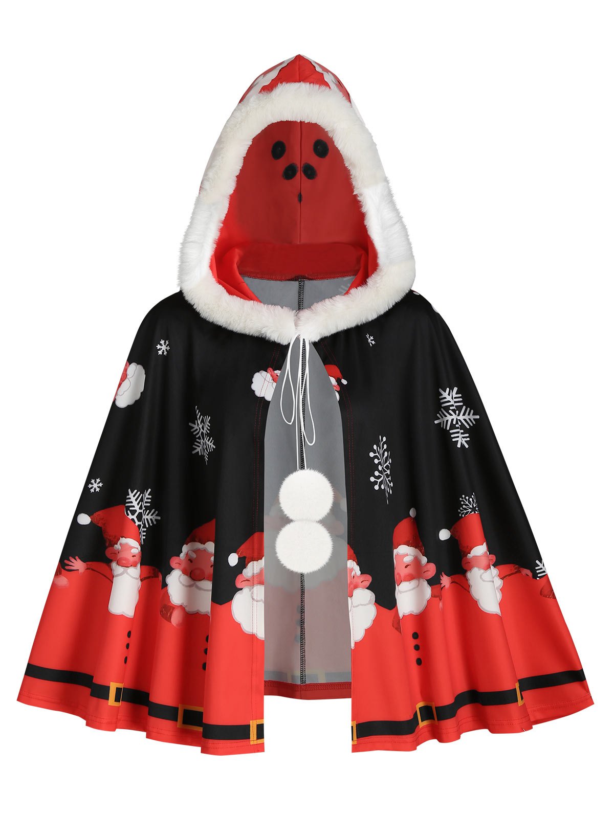 Plus Size Faux Fur Trim Christmas Snowflake Santa Claus Cape