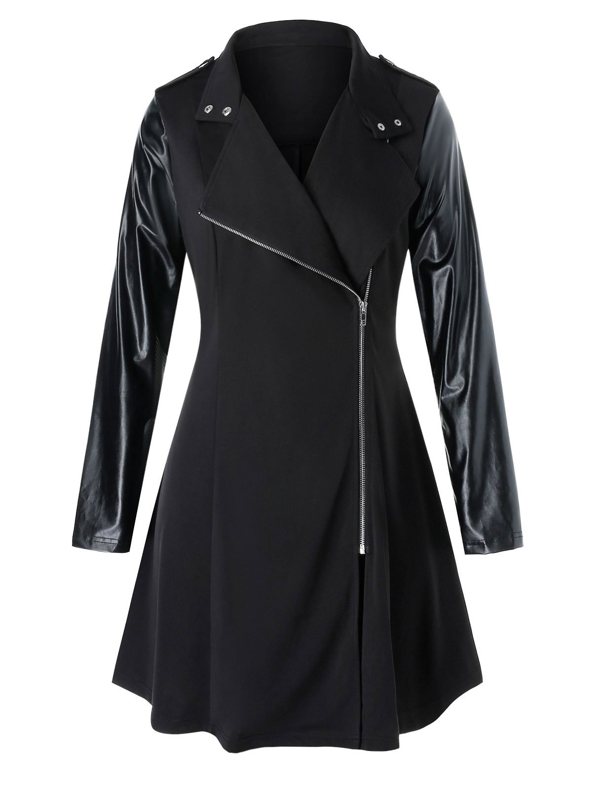 Plus Size Mixed-media Faux Leather Panel Zip Tunic Coat