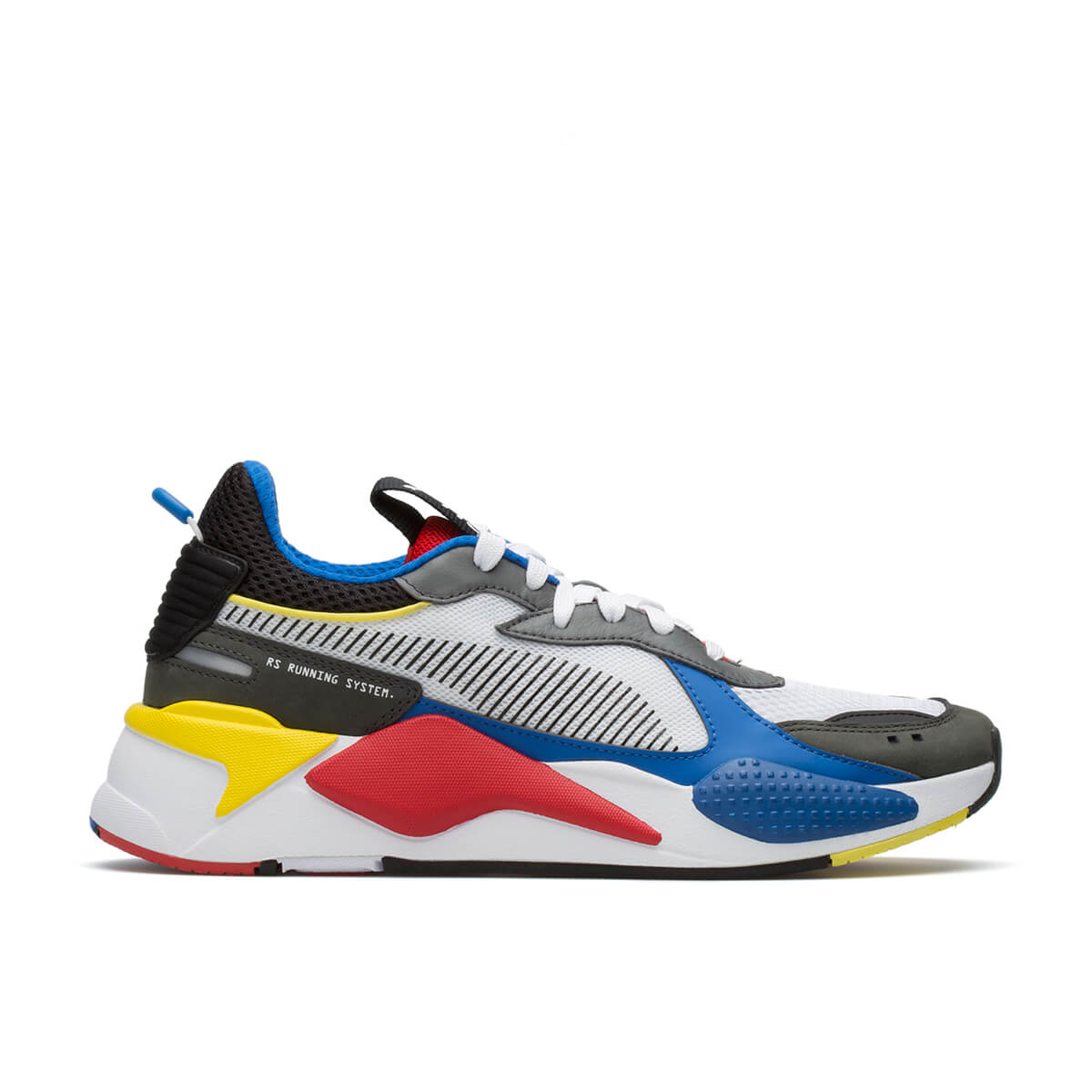RS-X Toys sneakers from the S/S2019 Puma collection in multicolorThese sneakers from Puma new collection are a remake of the 80s running model and are inspired by collectors vinyl toys. The RS-X Toys sneaker, here in white, blue, red and yellow, features a mesh and textile upper with leather and reflective details, moulded insole for a better comfort, lightweight polyurethane midsole, a rubber outsole and Puma RS Running System logo. – Mesh and textile upper- Leather and reflective details – Polyurethane midsole- Rubber outsole- Sizing: Footwear (UK)- Code: 369449_02