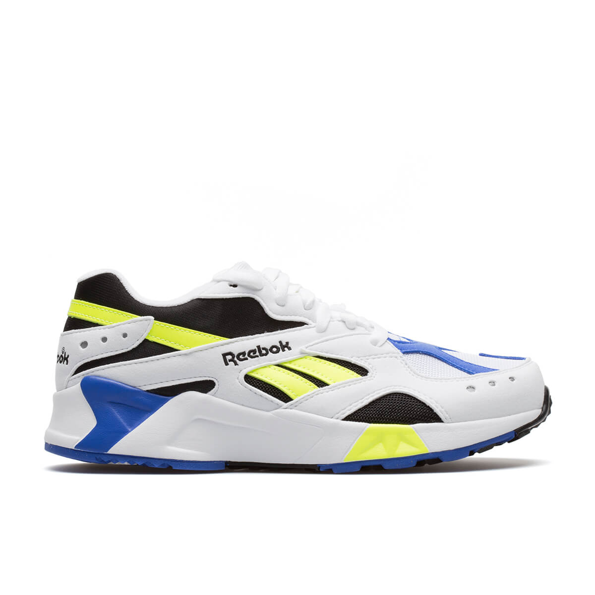 Aztrek sneakers from the S/S2019 Reebok collection in whiteThis sneaker from Reebok new collection recreates a running model from the 90s. The Aztrek sneakers, here in white, feature a mesh and synthetic suede upper, EVA midsole for a lightweight cushioning, a rubber outsole and Reebok logo. – Mesh and synthetic suede upper- EVA midsole- Rubber outsole- Reebok logo- Sizing: Footwear (USA)- Code: CN7840