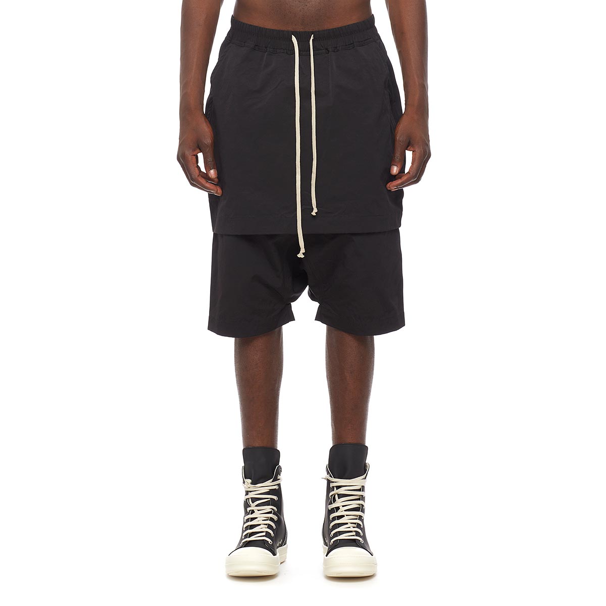 Kilt pods from the F/W2016-17 Rick Owens DRKSHDW collection in blackThese pants from Rick Owens DRKSHDW new collection come in a comfortable fit. The kilt pods, here in black, are made of cotton and feature a low crotch shorts under a kilt, an elasticated waistband, buttons closure, two side pockets and two others at back. This product from Rick Owens DRKSHDW is Made in Italy.- Low crotch pants- Skirt- Elasticated waistband- Two side pockets- Two pockets at back- Composition: 52% Cotton 48% Polyamide – Pockets lining: 100% Cotton – Band: 97% Cotton 3% Rubber – Made in Italy- Code: DU16F8385MU- The model is wearing an international S size