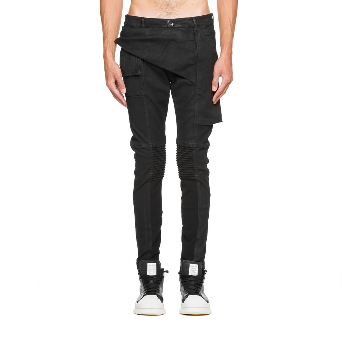 Memphis denim trousers from the F/W2017-18 Rick Owens DRKSHDW collection in blackThese pants from Rick Owens DRKSHDW new collection come in a slim fit. The denim trousers, here in black, are made of cotton and feature a band with inner pocket at front, buttons closure, two pockets at front and two others at back. This product from Rick Owens DRKSHDW is made in Italy.- Denim trousers- Front panel with inner pocket- Two pockets at front- Two pockets at back- Composition: 91% Cotton – 6% PBT – 3% Elastane- Made in Italy- Code: DU17F2356SBKM099- The model is wearing a 31 size