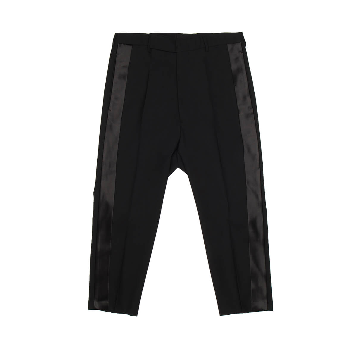 Tux Cropped Astaires pants from the S/S2019 Rick Owens collection in blackThese pants from Rick Owens new collection come in a slim fit. The cropped pants, here in black, are made of wool and feature a buttons closure, two side pockets, two pockets at back and a textile band at sides. These pants from Rick Owens are made in Italy.- Cropped pants- Buttons closure- Pockets- Textile bands- Composition: 96% New wool 4% Elastane – leg lateral detail 73% Cotton 27% Silk – lining 100% Cupro – Made in Italy- Code: RU19S2373 ZLSE 09- The model is wearing a 48 size
