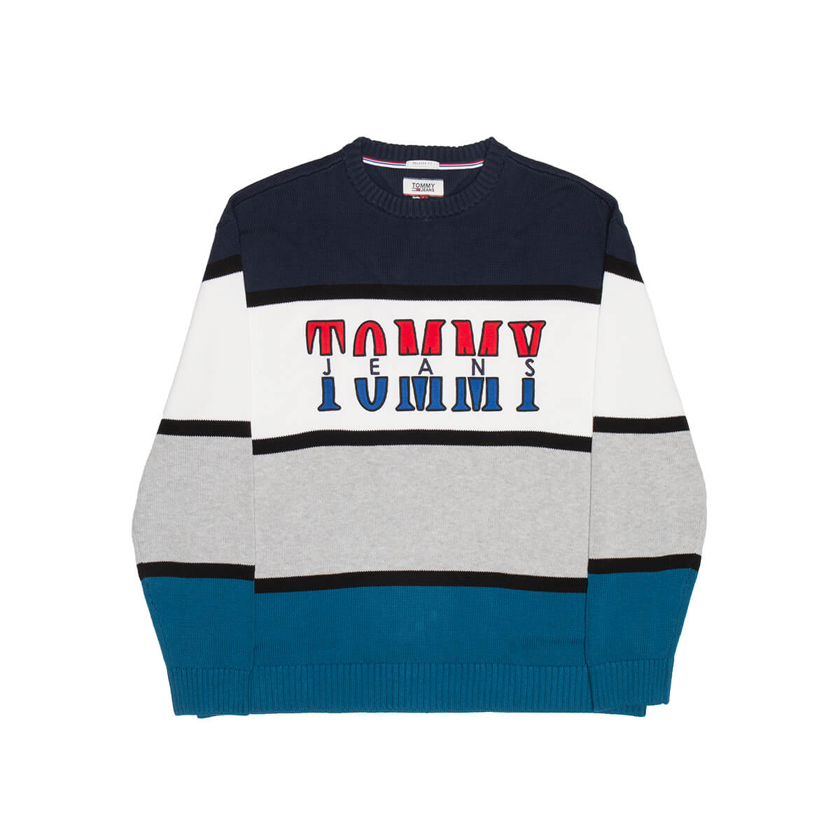 Colorblock sweater from the F/W2018-19 Tommy Jeans collection in multicolorThis sweater from Tommy Jeans by Tommy Hilfiger new collection comes in a comfortable fit. The sweater, here in blue, white and grey, is made of cotton and features a crew neck. This sweater is in partnership with Better Cotton Initiative to improve cotton farming globally.- Sweater – Crew neck – Tommy logo- Composition: 100% Cotton – Code: DM0DM04471 901- The model is wearing an international L size